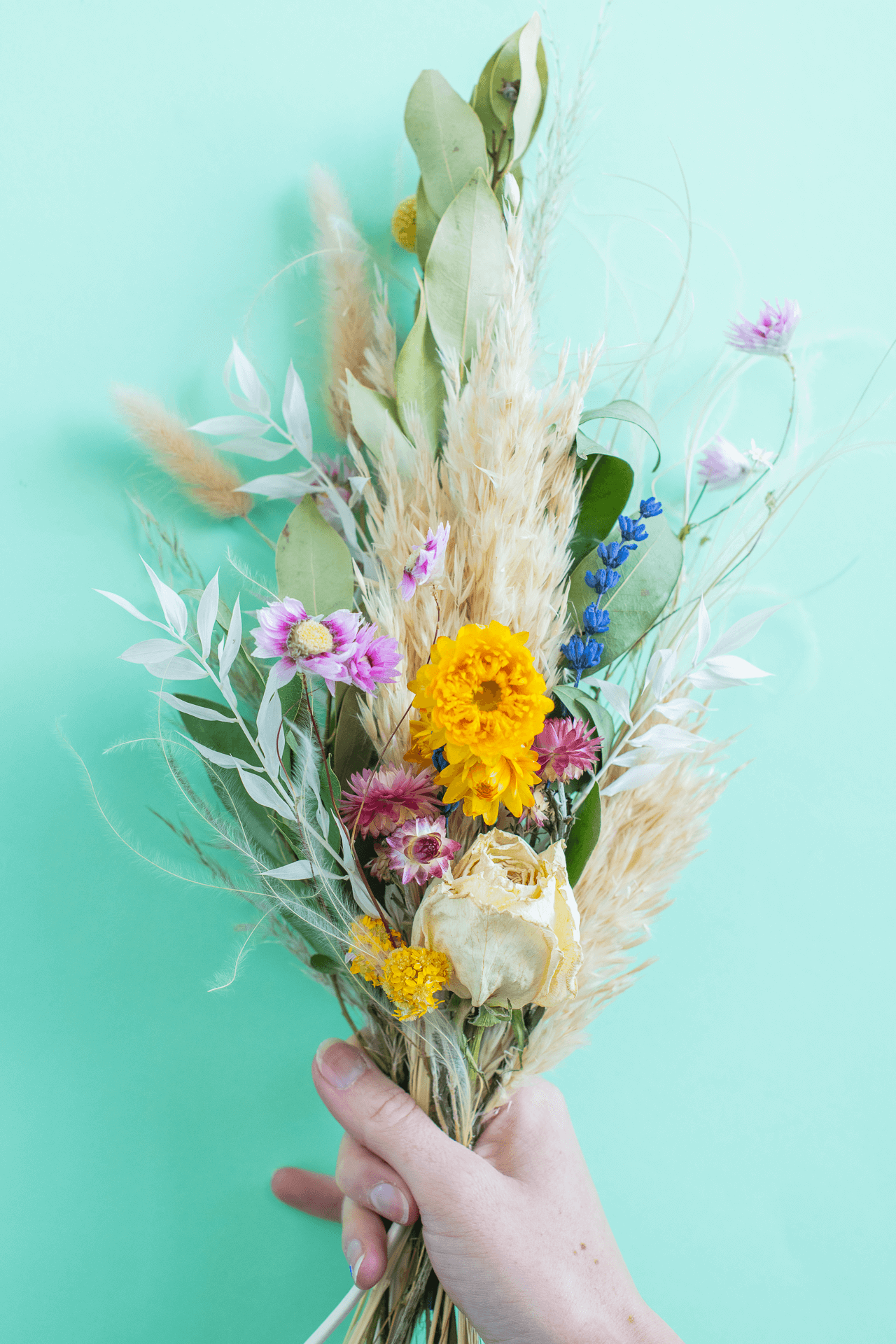 Our Dried Bouquets include a combination of dried greens, florals and grasses to create a lovely balance of textures that still feel vibrant.