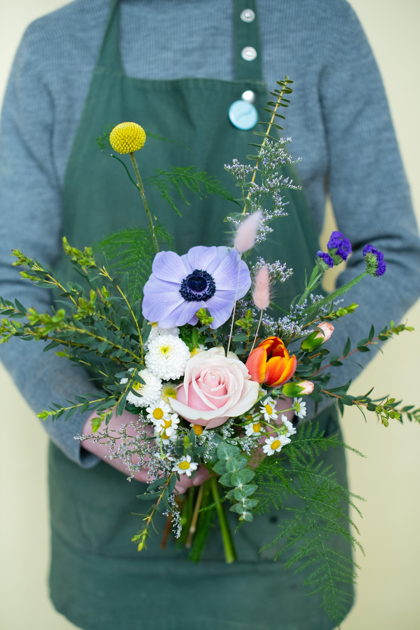 Our Bouquets include: Eucalyptus, and other fresh greens, along with a selection of lovely seasonal blooms.
