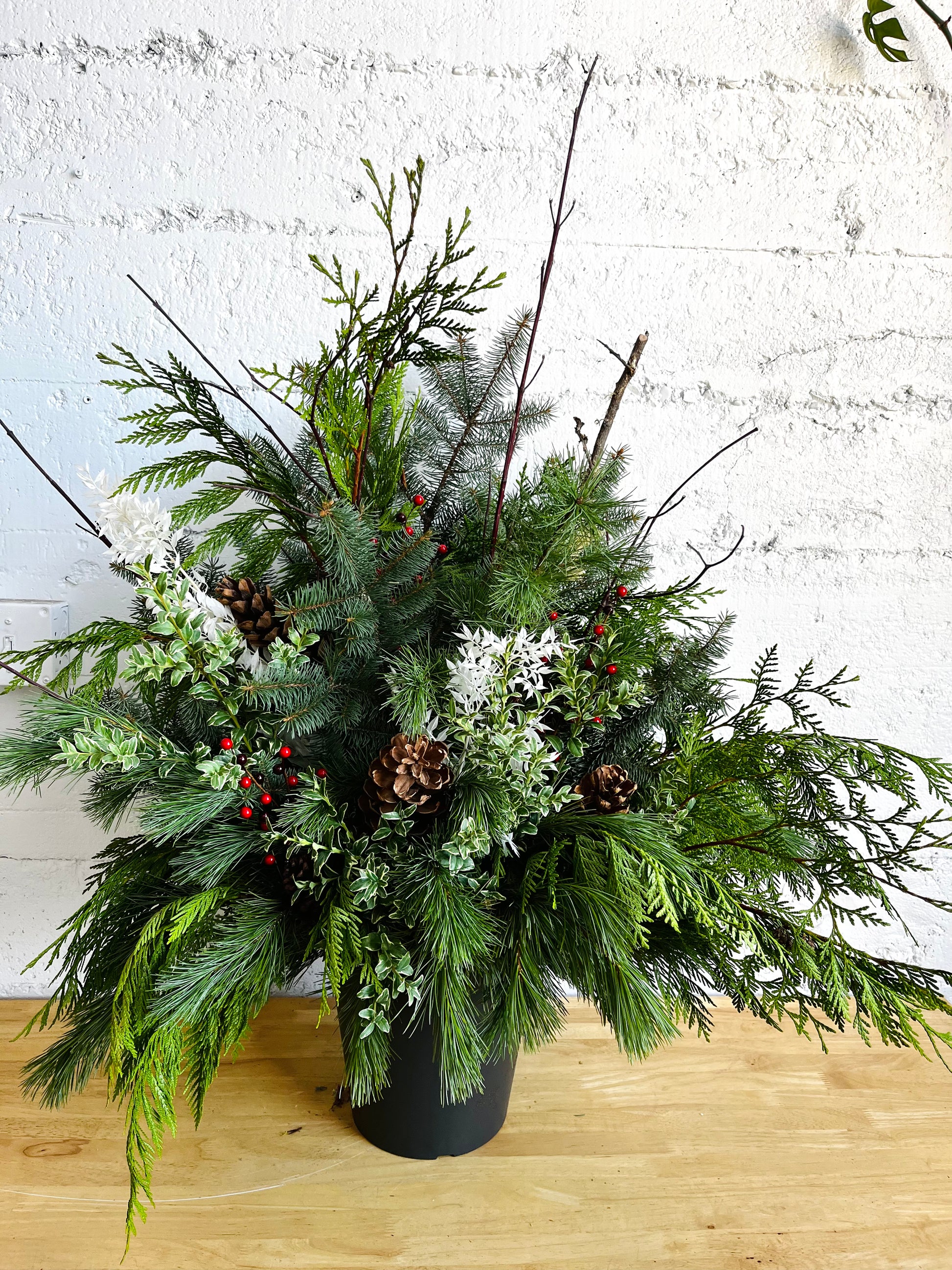 Looking to add some seasonal flair to your front stoop this holiday season? We will teach you how to make a beautiful, organic, and seasonal outdoor planter. We'll walk you through the process step-by-step, while allowing you the creative freedom to create your own unique arrangement to take home and place in an outdoor planter.