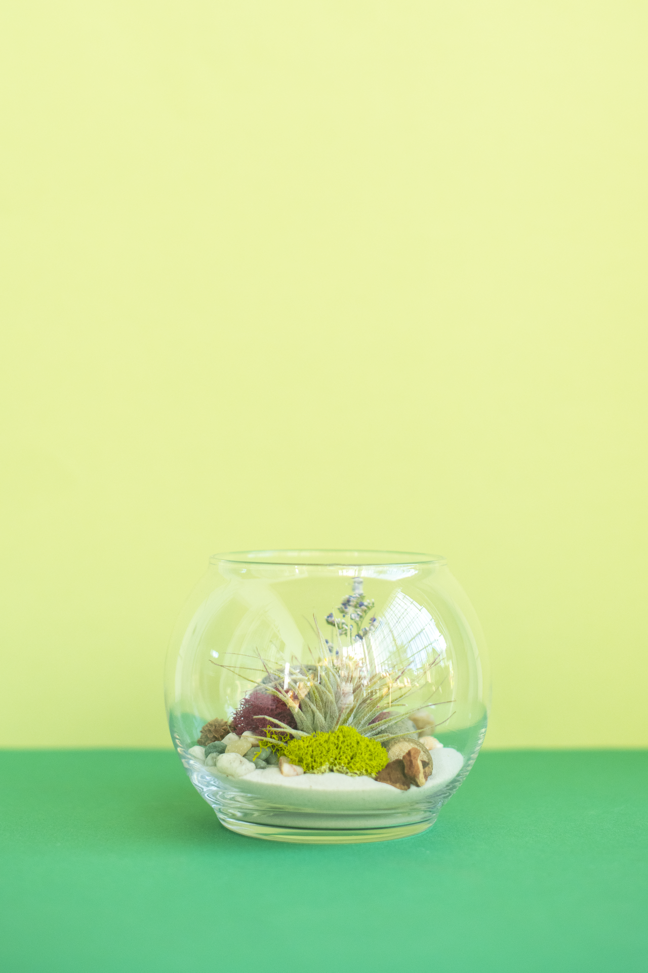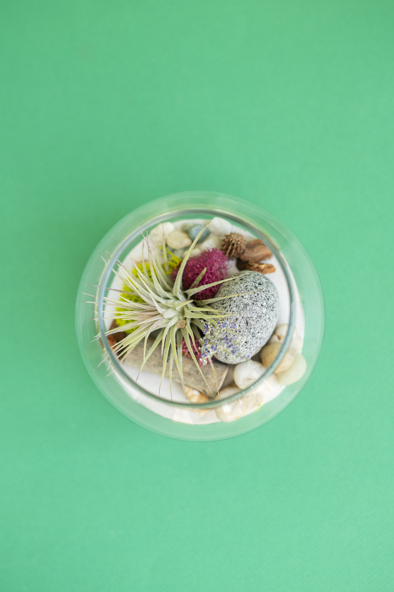 This lovely custom airplant terrarium makes a perfect gift! We will create a unique low-maintenance landscape tucked into a glass container. It's natural design will easily fit into any home and the lush combination of plants and decorative materials are sure to be a conversation piece.
